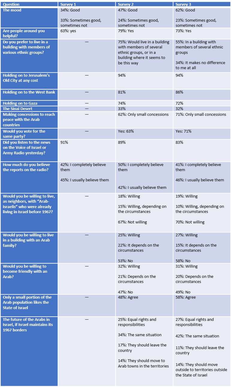 The Guttman Center for Public Opinion and Policy Research (then the Guttman Center) carried out a series of surveys just before, during and after the Six-Day War.