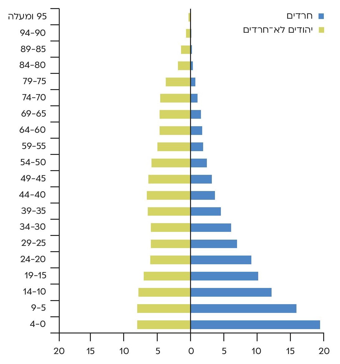 קצב הגידול הטבעי השנתי של האוכלוסייה החרדית מהיר — 4.2% לשנה מ-2009, לעומת 1.9% של כלל האוכלוסייה ו-1.4% של האוכלוסייה היהודית הכללית. גידול מהיר זה נובע משילוב של שיעור פריון גבוה וגיל נישואים ולידה צעיר, שניהם מאפיינים את האוכלוסייה החרדית. חלקה של אוכלוסייה זו בכלל האוכלוסייה בישראל, שגדל מ-10% ב-2009 ל-13.9% ב-2024, הוא קרוב לשביעית. שיעור החרדים מכלל היהודים ואחריםלרוב מדובר בעולים מחבר המדינות שהם זכאי עלייה לישראל על פי חוק השבות אף שאינם יהודים על פי ההלכה. כמו הלמ"ס גם אנו מחשיבים אותם לחלק מהציבור היהודי. עלה בשנים האלה מ-12.5% ל-17.7%. אם מגמות הגידול האלה יימשכו תכפיל האוכלוסייה החרדית את גודלה בכל 17 שנים. לשם השוואה — כלל האוכלוסייה הישראלית צפויה להכפיל את גודלה מדי 40 שנים, והאוכלוסייה היהודית הלא-חרדית — בכל 80 שנים. ואולם, למרות התחזית הזאת יש סבירות גבוהה שהעתיד צופן האטה בקצב הגידול המהיר של האוכלוסייה החרדית בעקבות ירידה בשיעורי הפריון.