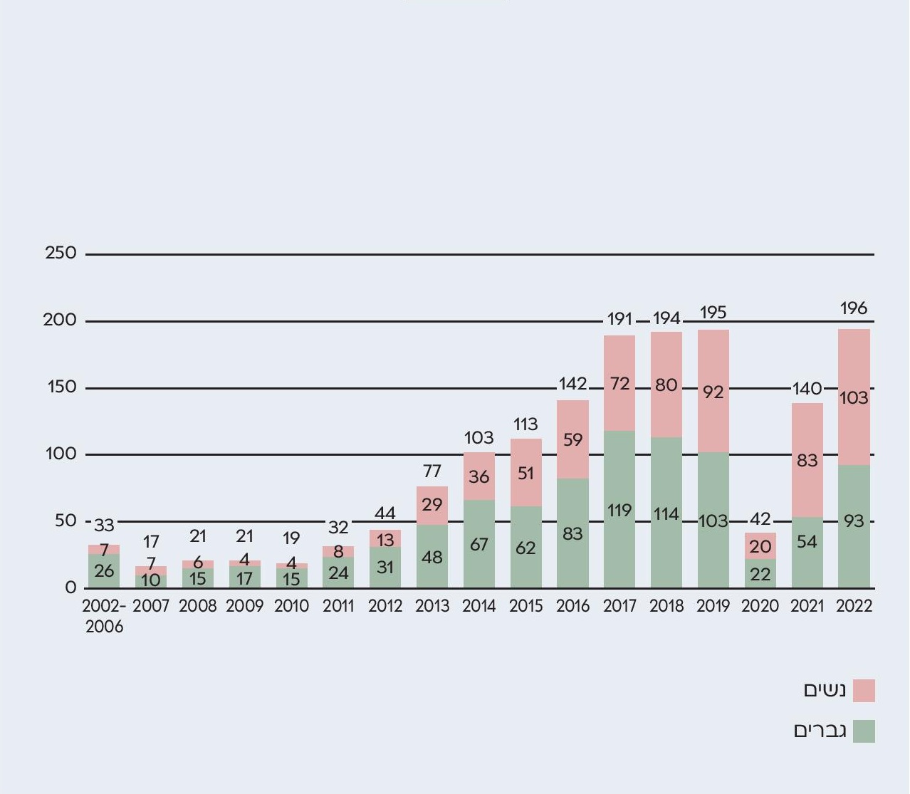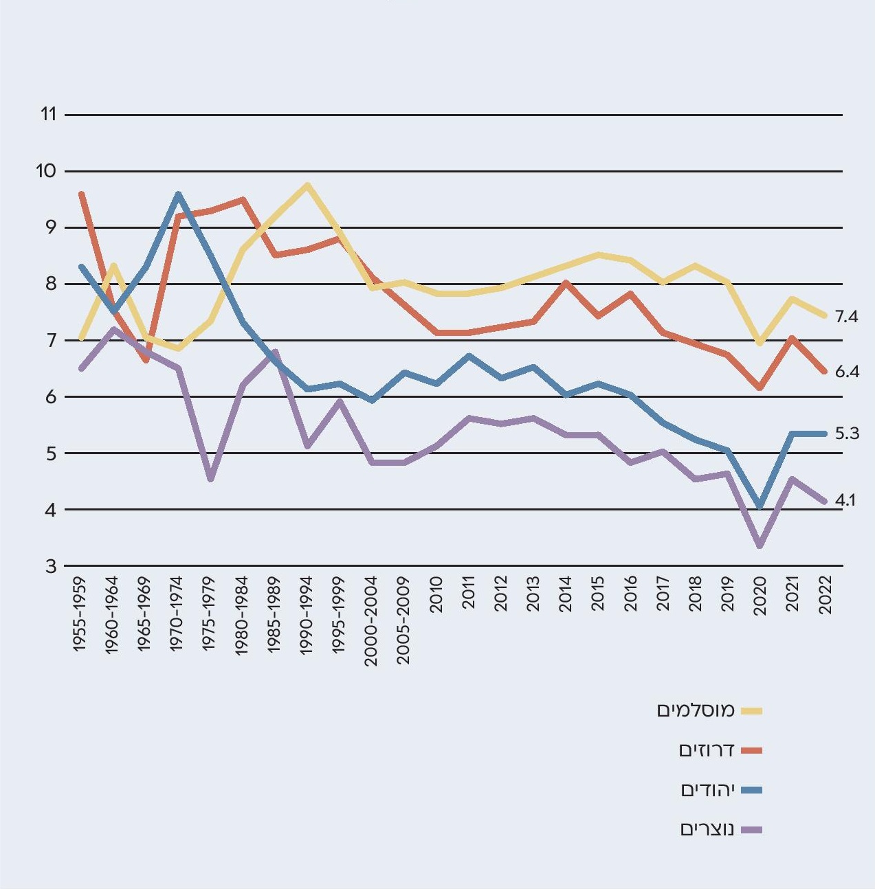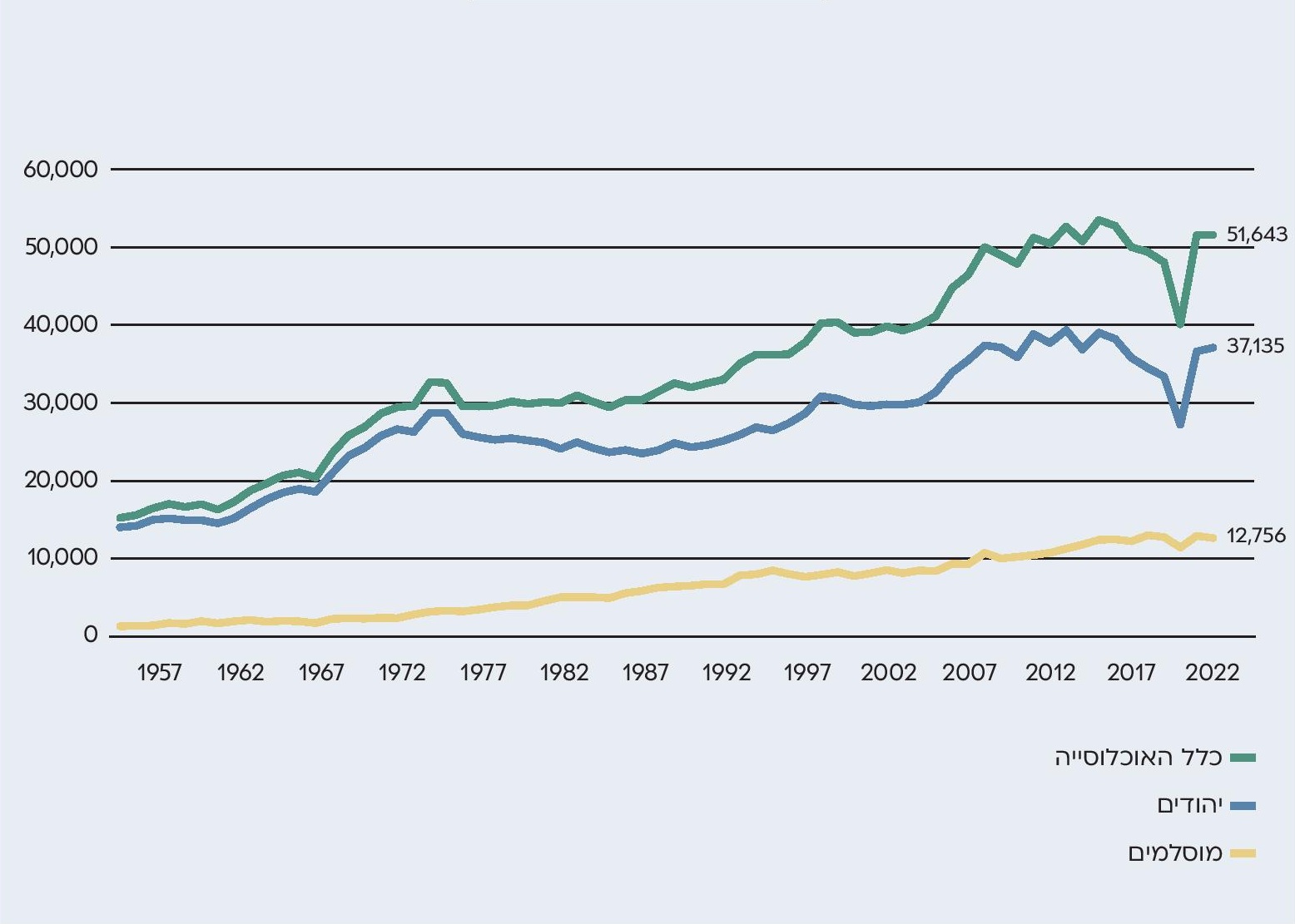מקור: עיבודי המחברים למידע שהתקבל מהלשכה המרכזית לסטטיסטיקה.