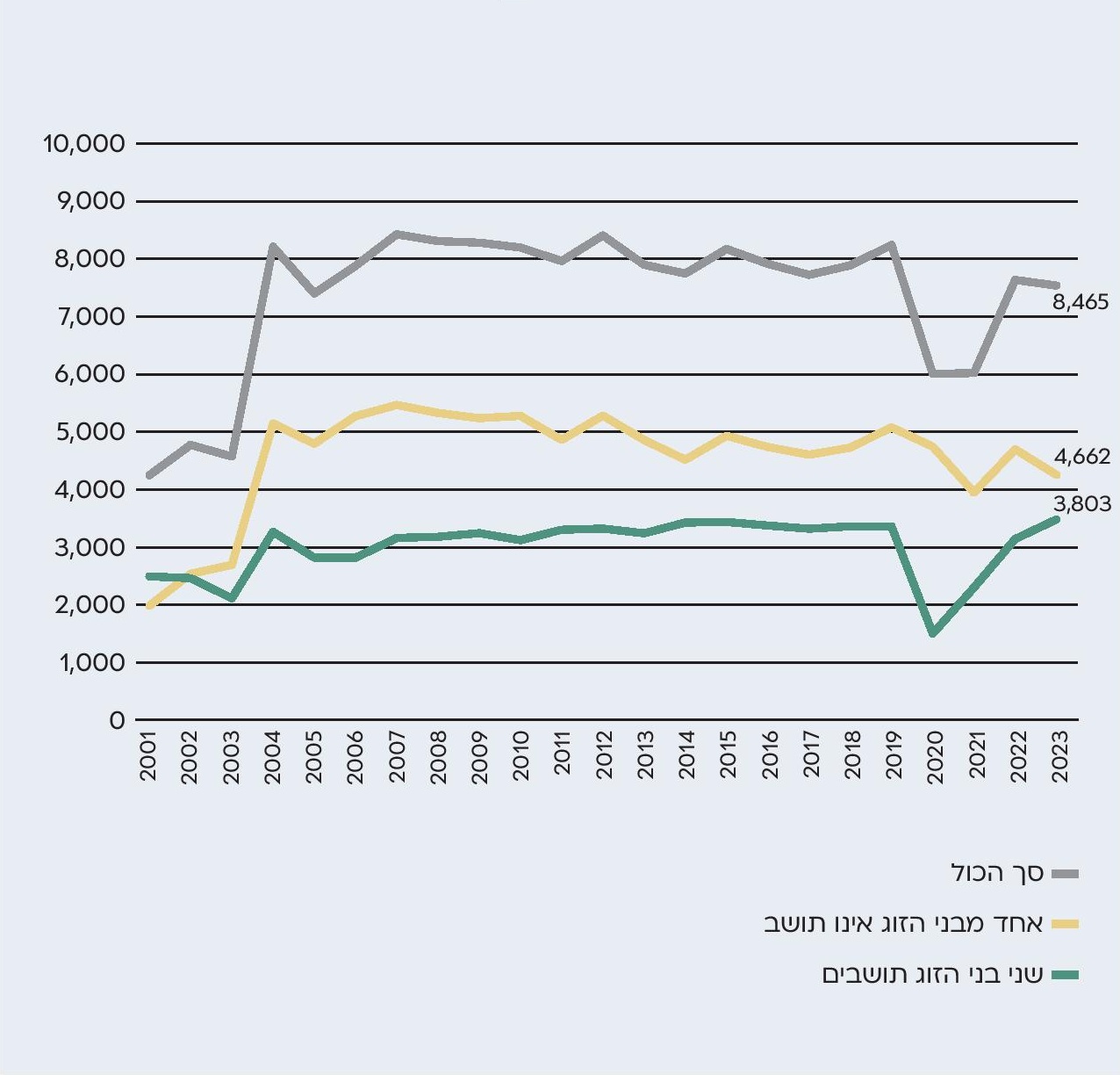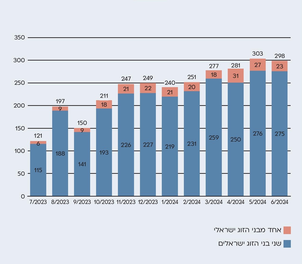 מקור: ג'רי אלמו-קפיטל, נתונים על זוגות המוכרים כידועים בציבור במוסד לביטוח לאומי, מרכז המחקר והמידע של הכנסת, 2024.