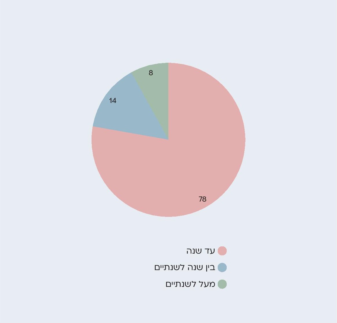 כפי שהראינו לעיל, לצד תיקים שנסגרים ללא גט, מיעוט של תיקים נשארים פתוחים. בתרשים הבא מוצגת חלוקת התיקים הפתוחים לפי משך הזמן מעת פתיחתם.