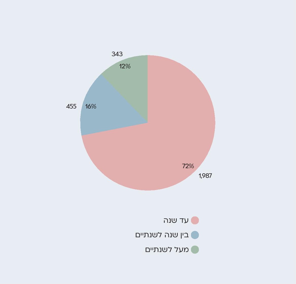 רוב של 72% מתיקי תביעות הגירושין הפתוחים בנובמבר 2024 נפתחו לפני פחות משנה, 16% מתיקים אלו נפתחו לפני שנה עד שנתיים, ו־12%, שהם 343 תיקים, נפתחו לפני למעלה משנתיים.