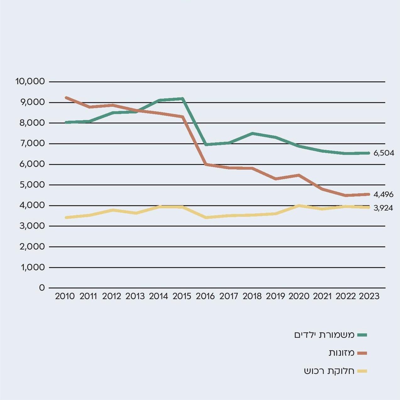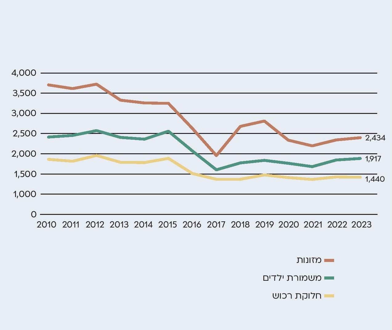 באשר לתיקי מזונות, הפרדנו בין תיקי מזונות ילדים ומזונות אישה לשנים