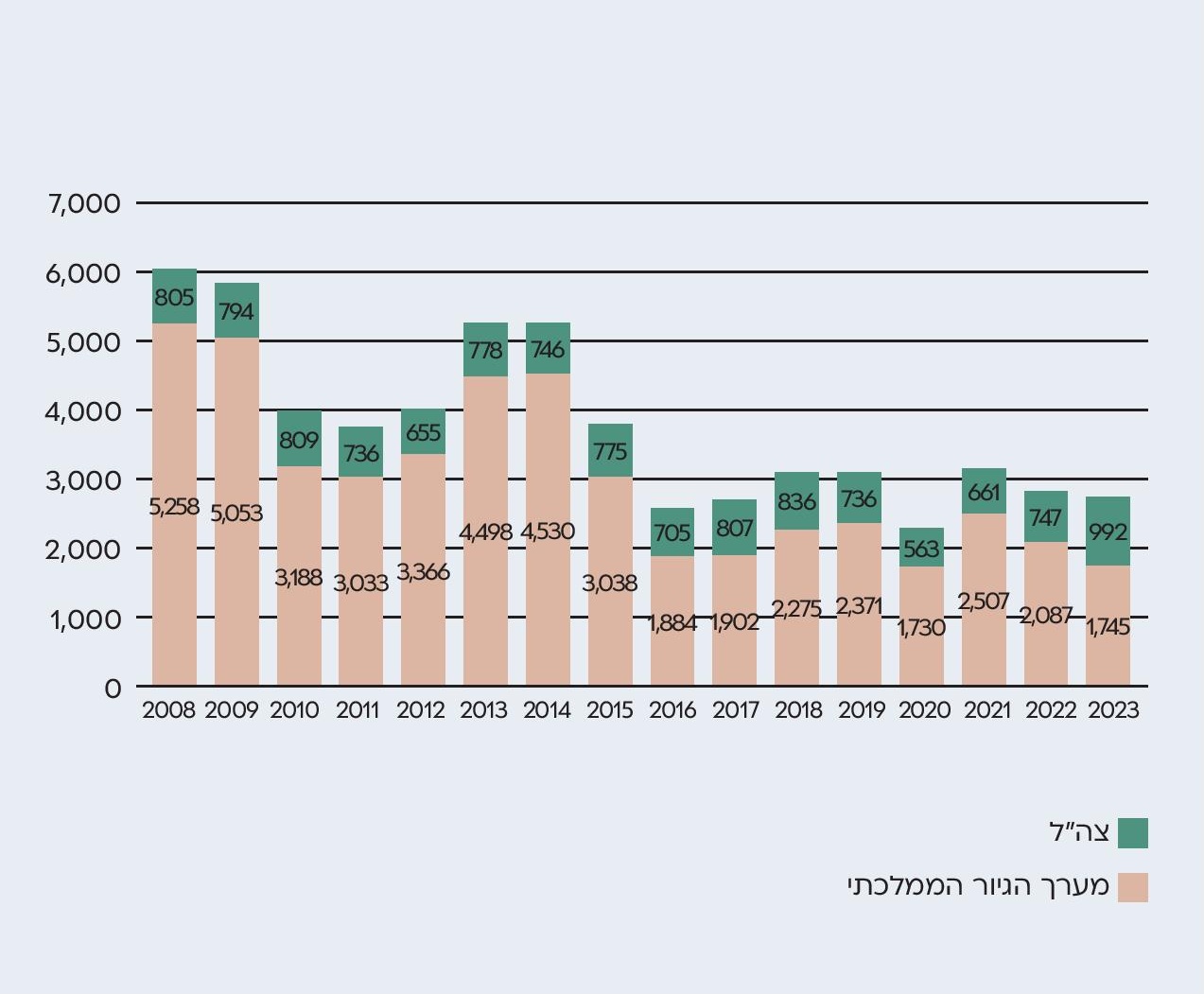 מקור: עיבודי המחברים למידע שהתקבל ממשרד ראש הממשלה ומצה"ל; נתוני המתגיירים עד שנת 2007 מבוססים על: נתנאל פישר, אתגר הגיור בישראל: ניתוח מדיניות והמלצות, מחקר מדיניות 103, המכון הישראלי לדמוקרטיה, 2015.
