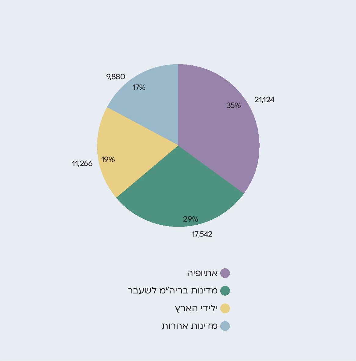 התרשים הבא מציג את מספר המתגיירים בכל שנה לפי ארץ הלידה של המתגיירים.