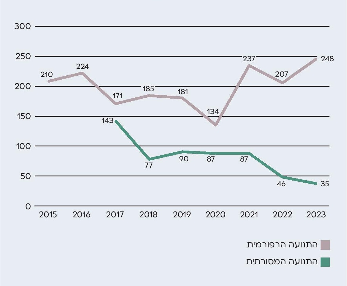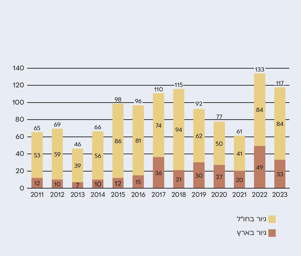 התרשים הבא מציג את מספר המתגיירים בשנים האחרונות בתנועות הלא־אורתודוקסיות בישראל.