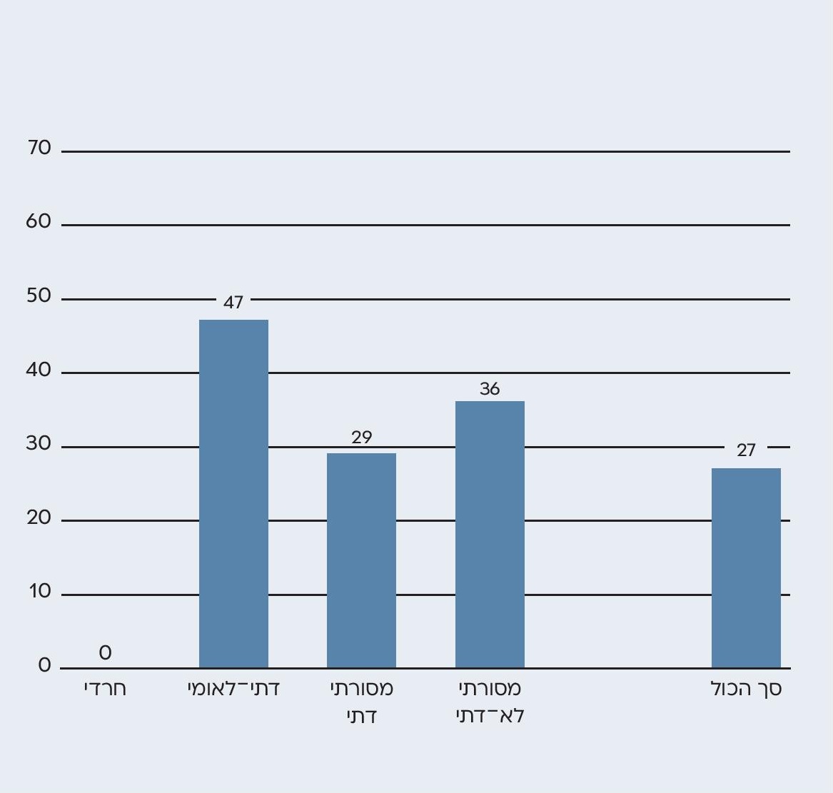 מקור: סקר דו־שנתון דת ומדינה 2024, המכון הישראלי לדמוקרטיה.