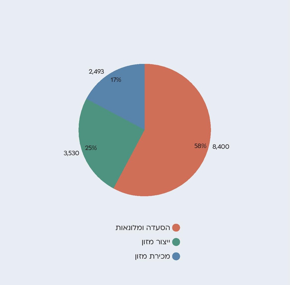תרשים ו/8. עסקים כשרים בהשגחת המועצות הדתיות, בחלוקה לפי ענף עסקי, 2022 (ב־% ובמספרים מוחלטים)