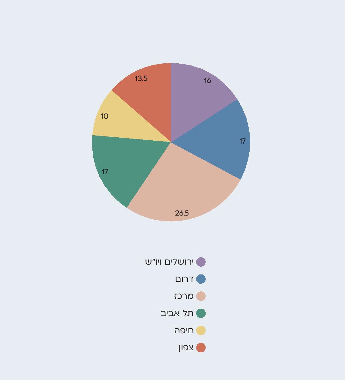 בתרשים הבא מתוארת חלוקת העסקים הכשרים בישראל למחוזות גאוגרפיים.