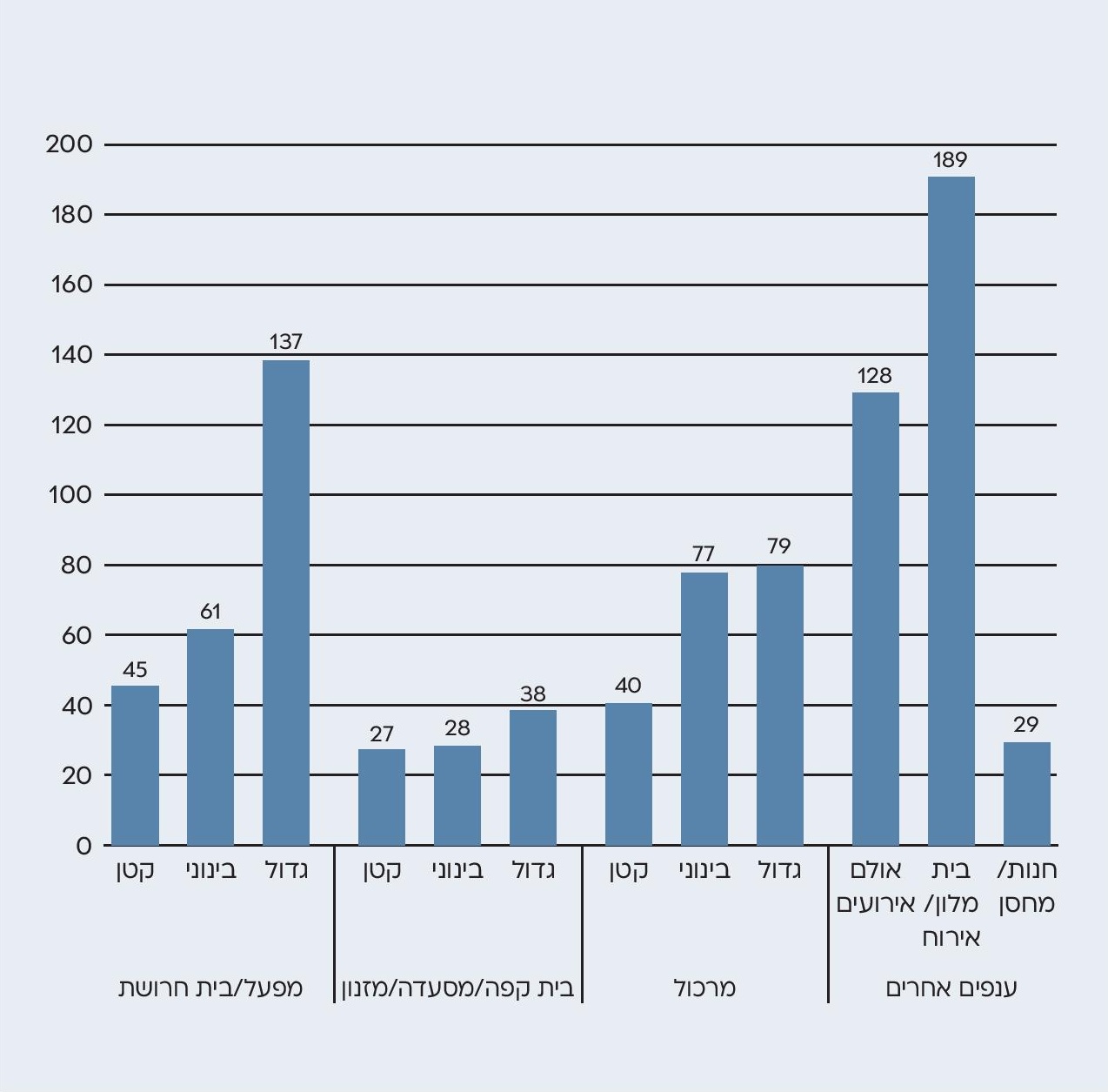 היקף שעות ההשגחה החודשי משתנה מעסק לעסק בהתאם לצרכים, היקף הפעילות וגודל העסק. התרשים הבא מציג את ממוצע שעות ההשגחה לחודש לפי ענף עסקי.