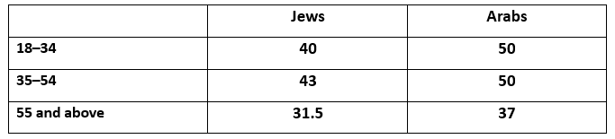Segmentation by age finds that among both Jews and Arabs, the level of agreement with the statement is much higher in the two younger age groups than in the older group.