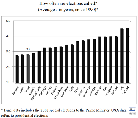 On average, since 1990 elections in Israel have been called every 2.8 years.