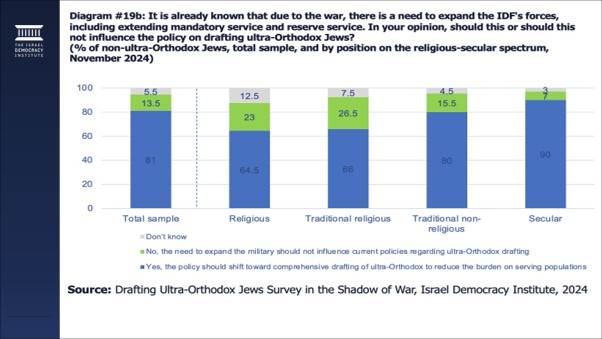 It is already recognized that due to the war there is a need for the IDF to increase its manpower, including by extending the service of those in the standing military and those in the reserves. Do you think this should impact the policy on conscripting members of the ultra-Orthodox community?