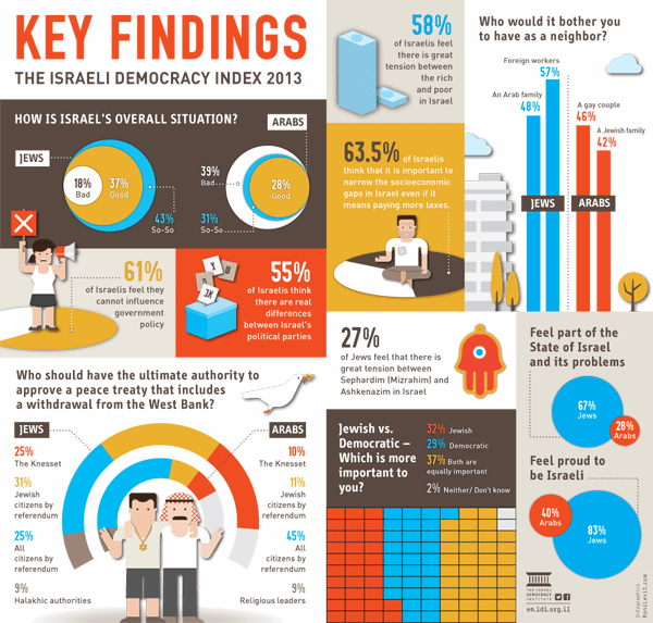 Below you will find a summary of the main findings of the 2013 Index, the abstract and introduction of the English edition, infographics presenting some of the main findings, and the full Index for free download in English and Hebrew.