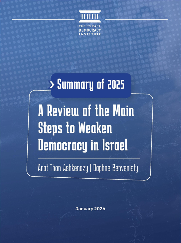 1. Anat Thon Ashkenazy and Daphne Benvenisty, "Review No. 8: The Government and the Coalition Are Urgently Advancing a Series of Moves That Dramatically Harm Israeli Democracy,“ Israel Democracy Institute website, April 6, 2025; Anat Thon Ashkenazy and Daphne Benvenisty, "Review No. 9: The Main Steps to Weaken Democracy During the Summer Session of the Knesset," Israel Democracy Institute website, July 23, 2025.