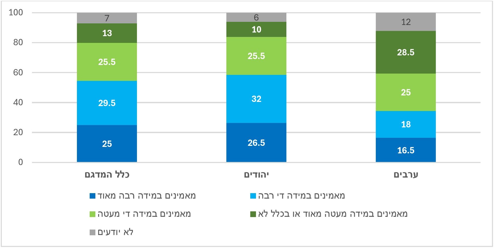 באיזו מידה מאמינים לדיווחי צה"ל על היקף הפגיעות בפלסטינים בעזה? (%)