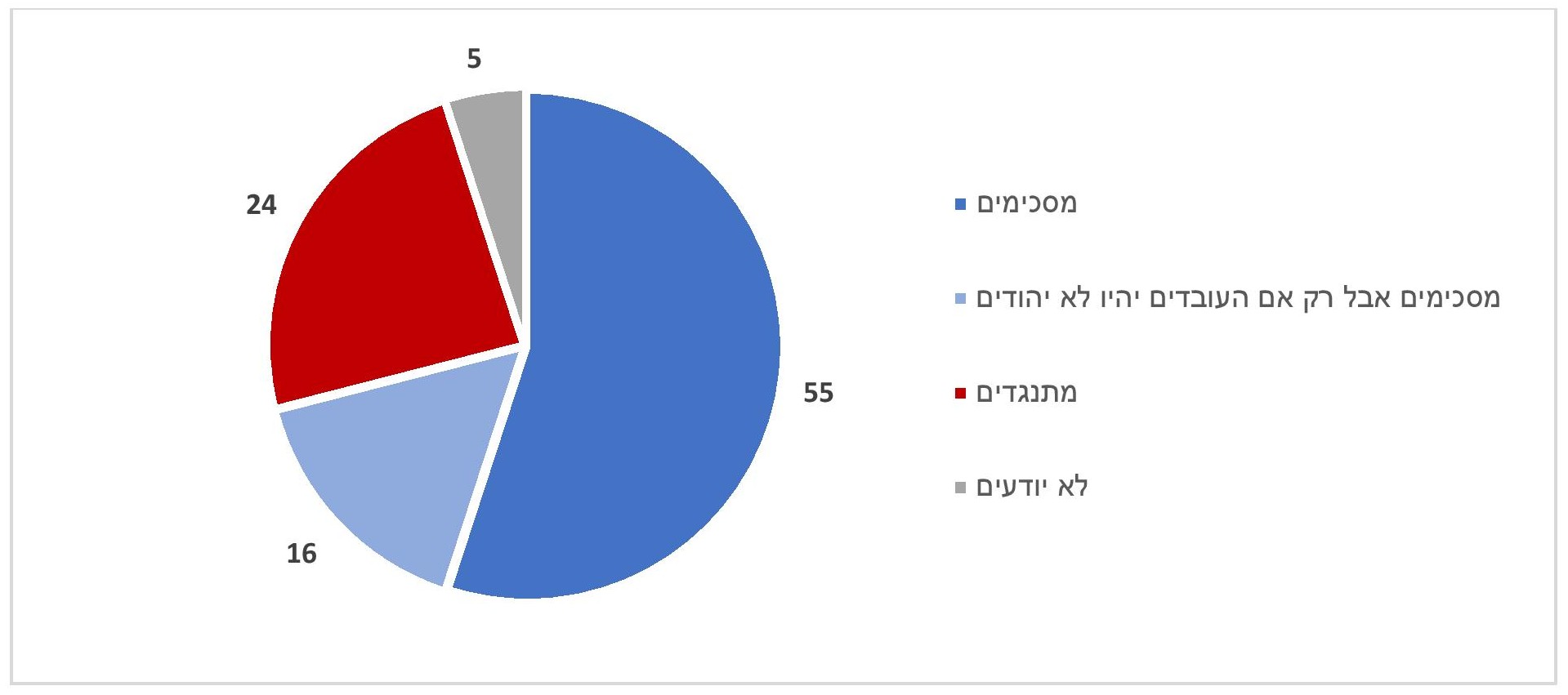 55% מכלל הציבור תומכים בעבודות בשבת, 24% מתנגדים, 16% מסכימים לביצוע עבודות בשבת רק אם העובדים יהיו לא יהודים