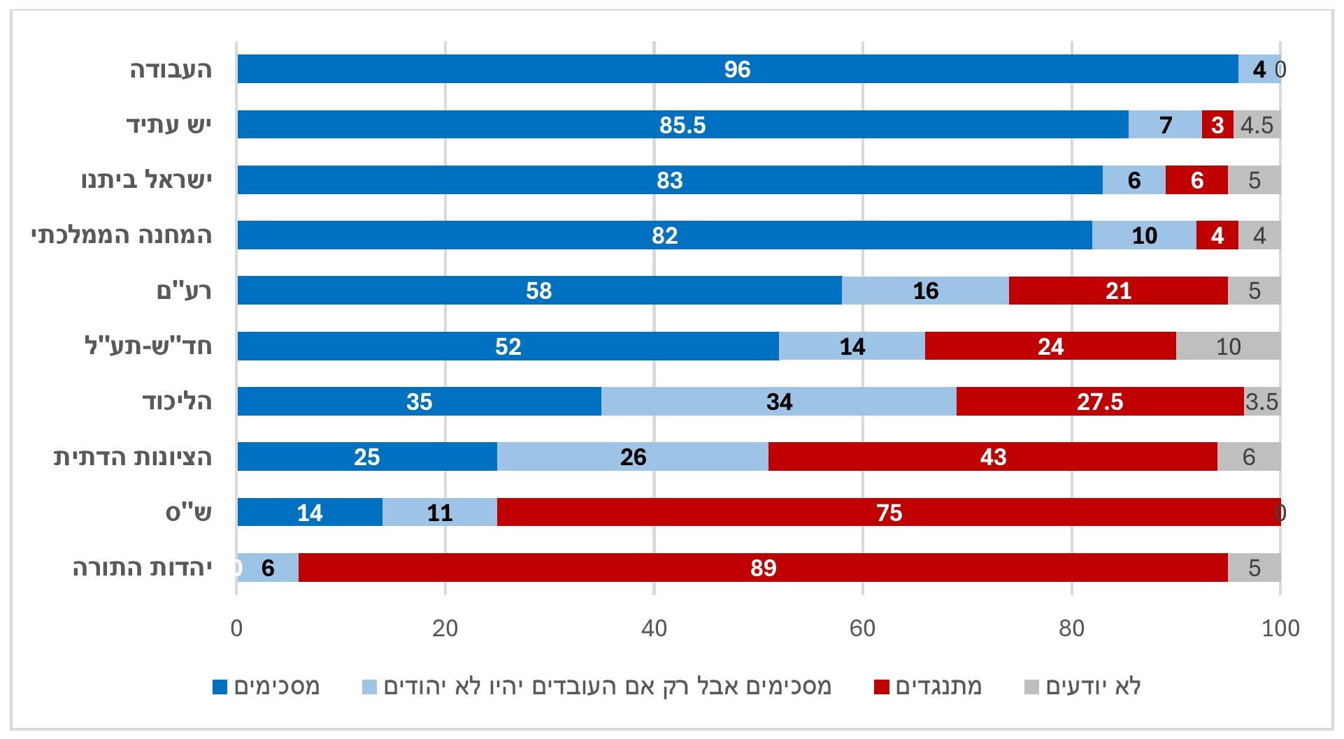 בקרב מצביעי הליכוד רק 27.5% מתנגדים ובקרב מצביעי הציונות הדתית – 43%.