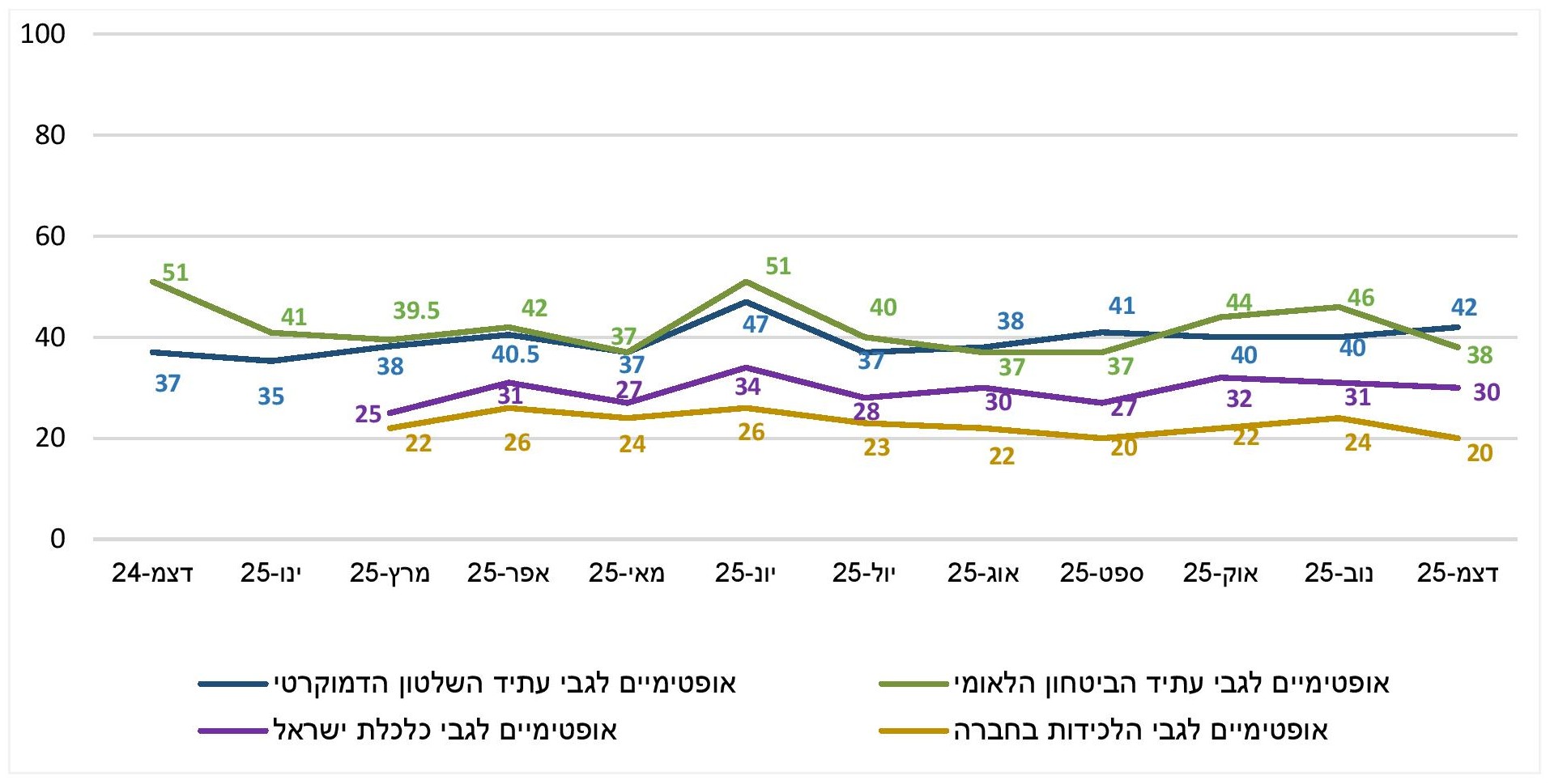 - בכל הפילוחים התחזית ל-2026 הן ברמה המדינתית הן ברמה האישית אופטימיות מאשר ערב 2025. כלומר, העתיד נראה שפיר יותר.