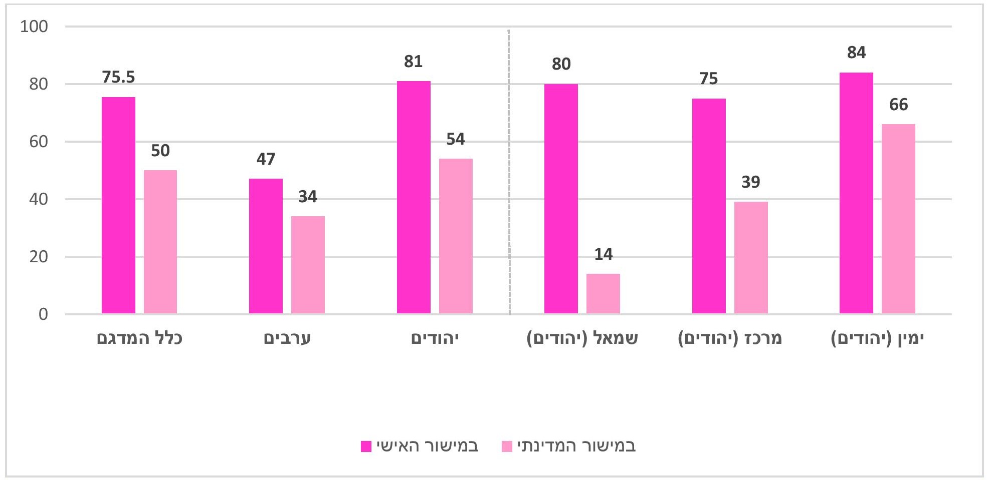 מסכימים שהמצב של נשים היה טוב יותר לו היו יותר נשים בכנסת, בממשלה ובמשרות בכירות במשרדי הממשלה (%)