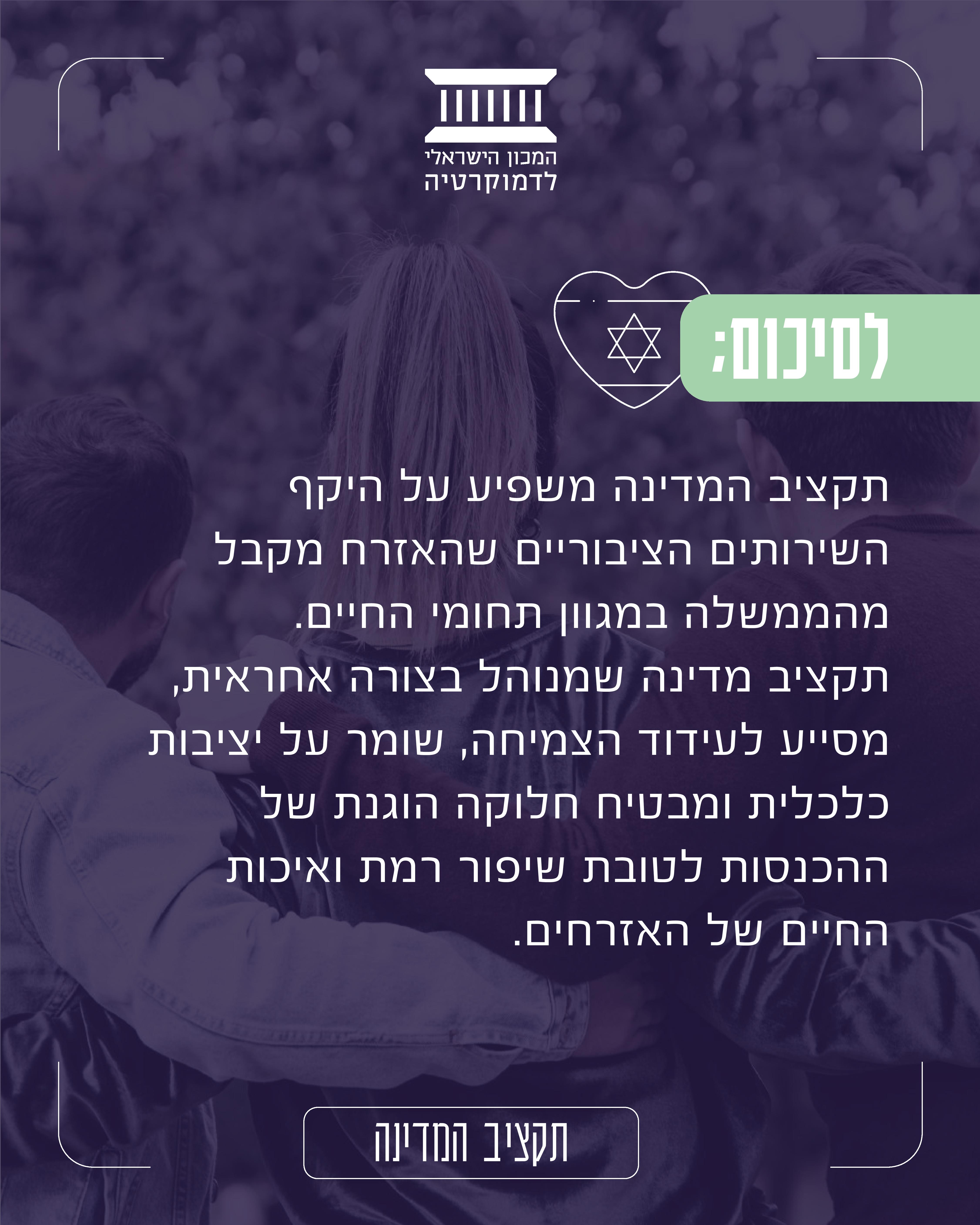 תקציב המדינה משפיע על היקף השירותים הציבוריים שהאזרח מקבל מהממשלה במגוון תחומים החיים, החל משירותי בריאות, חינוך, תשתיות, ועד לשירותי ביטחון, ביטחון פנים ורווחה. תקציב מדינה שמנוהל בצורה אחראית, מסייע לעידוד הצמיחה, שמור על יציבות כלכלית של המדינה ומבטיח חלוקה הוגנת של המשאבים העומדים לרשותו לטובת שיפור רמת ואיכות החיים של אזרחי המדינה.