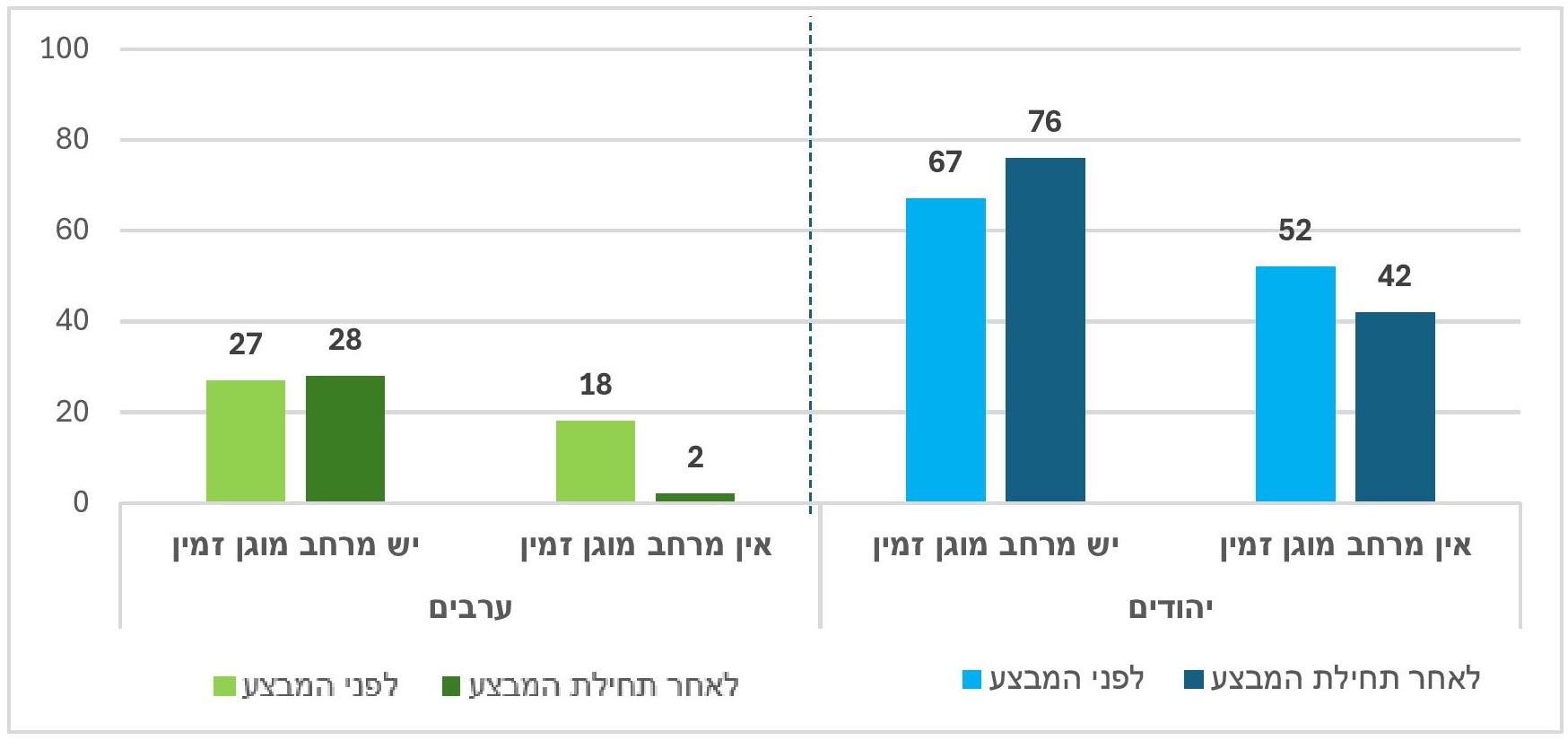 - בקרב אלו שאין בקרבתם מרחב מוגן זמין, הן יהודים הן ערבים, חלה ירידה משמעותית בתחושת המוגנות לאחר תחילת המבצע.