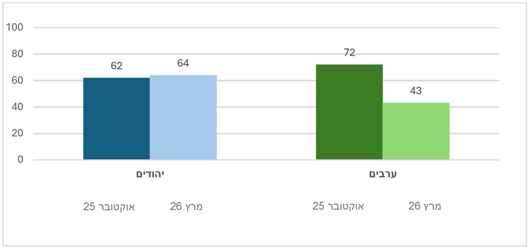 - בקרב הערבים השיעור הגבוה מאוד (52%) השיבו שאינם יודעים ולכן לא המשכנו בפילוח הנתונים.