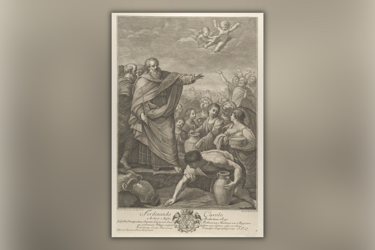 משה עם בני ישראל האוספים את המן, תחריט מהמאה ה-18 (בנדטו ארדי, לפי ציור של גווידו רני) | Photo by IMAGO IMAGES via REUTERS
