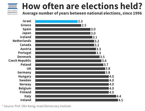 How often does Israel hold elections? On average every 2.3 years!