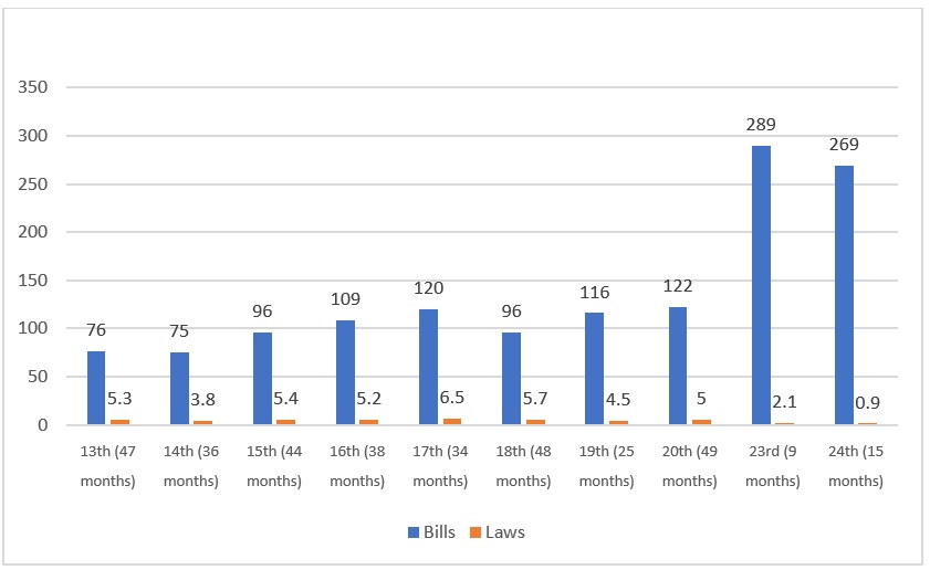 Figure 1. Bills submitted and laws passed by the 24th Knesset