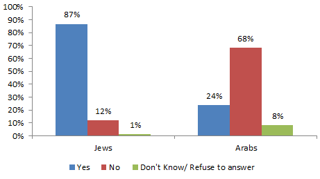 Note: The survey was conducted by telephone by the Midgam Research Institute, on April 28–29 2014. The survey included 600 respondents, of whom 500 respondents were Jewish and 100 were Arab. The survey was conducted in Hebrew, Arabic and Russian. Responses were weighted so that the total sample constituted a representative sample of the adult population of Israel aged 18 and over. The maximum measurement error for the entire sample is ±4.1%.