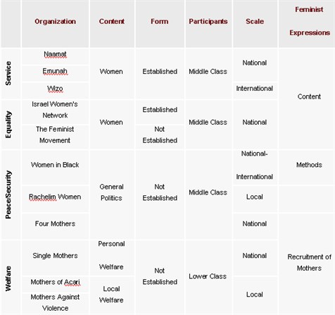 Criteria for Categorizing Women's Organizations in Israel