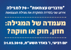 האם מגילת העצמאות, לאחר 70 שנות קונסנזוס, היא מצפן חוקתי או רק השראה? האם היא הייתה צריכה להיות מלכתחילה חוק הלאום או שמא מנסחיה לא באמת התכוונו להגדיר באמצעותה את האופי הלאומי של מדינת ישראל?