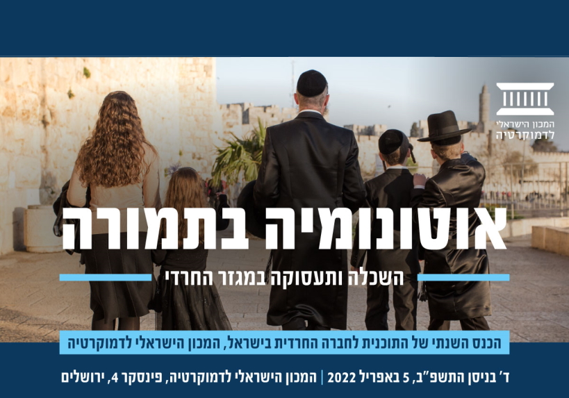 דיון מיוחד של המכון הישראלי לדמוקרטיה שיעסוק בחברה החרדית בהיבטים של חינוך, תעסוקה, קצבאות וגיוס, כמו גם בסוגיות של דת ומדינה בהן נישואים אזרחיים, הסדרת השבת ברשויות המקומיות