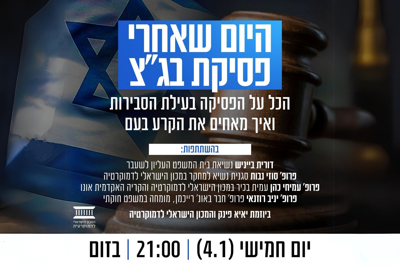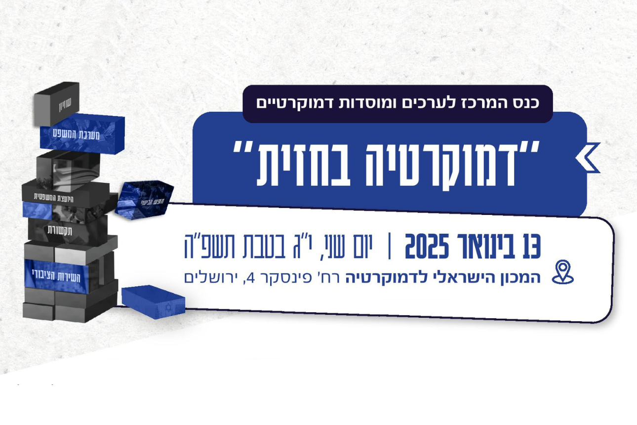 הכנס יתקיים ב-13 בינואר 2025 | 17:00-09:00 | המכון הישראלי לדמוקרטיה, פינסקר 4, ירושלים