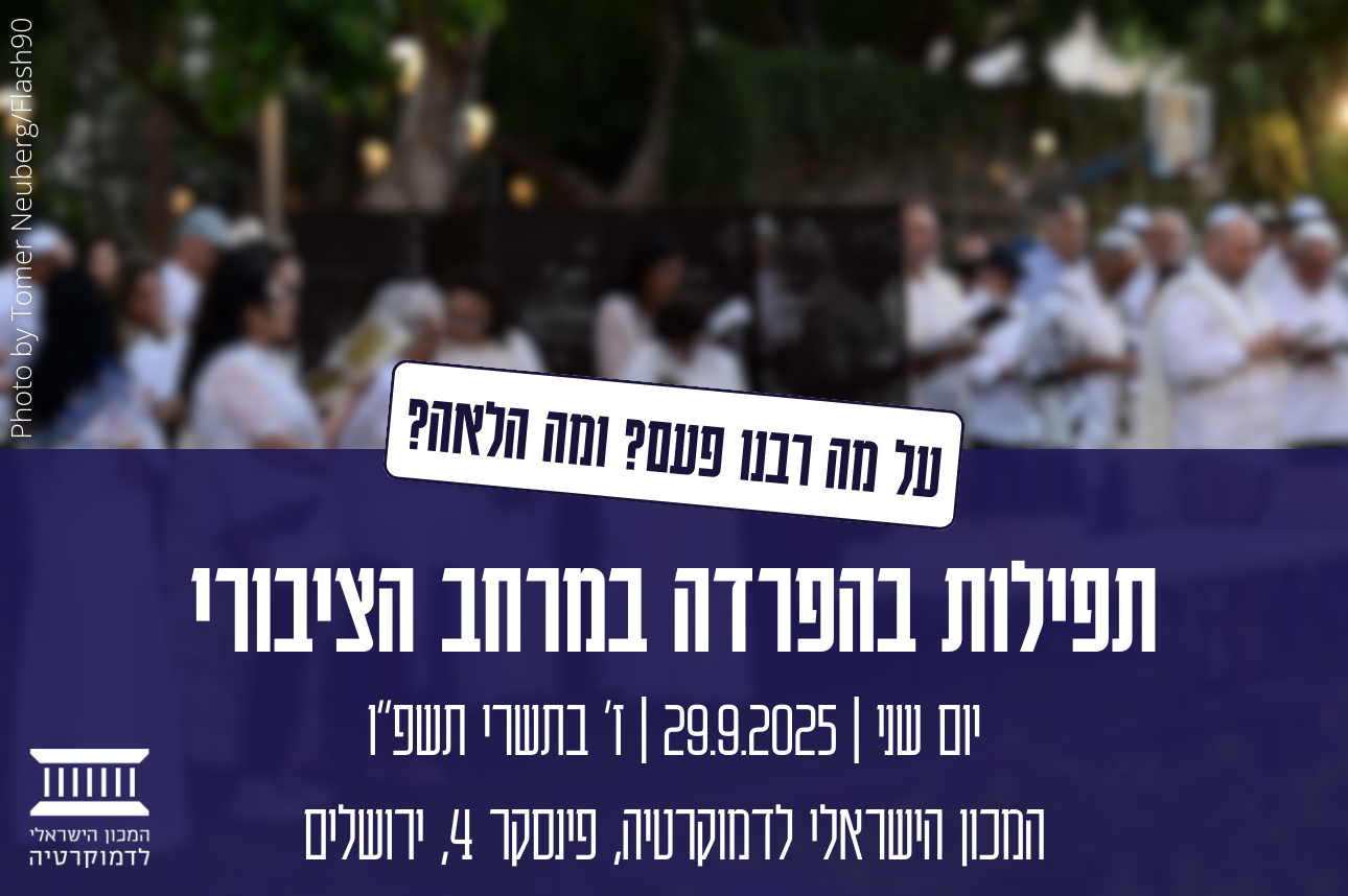 יום ג' | 16 בספטמבר 2025 | 14:30-09:00 | המכון הישראלי לדמוקרטיה, פינסקר 4, ירושלים | למוזמנים בלבד | ההשתתפות מותנית בהרשמה מראש