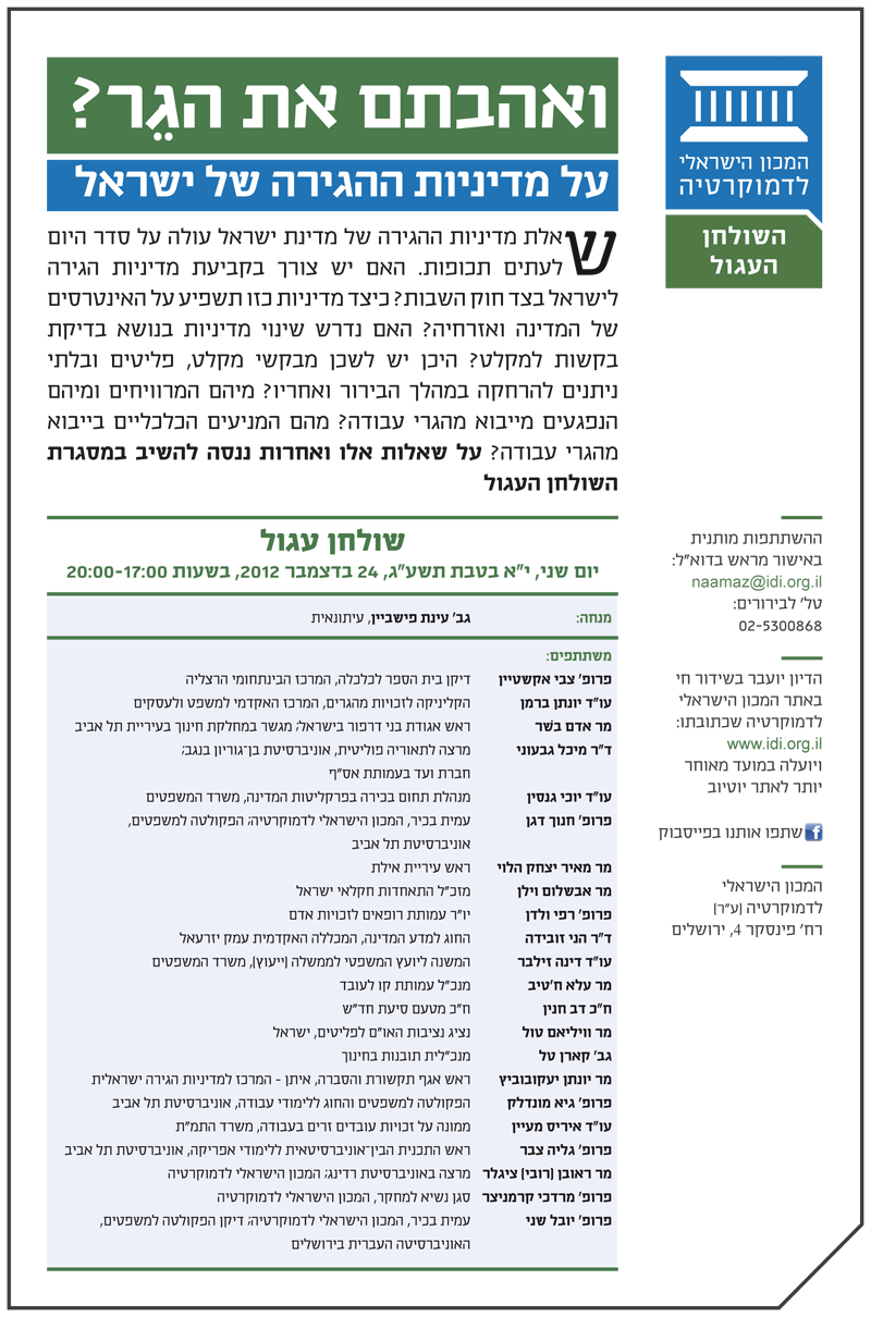 הכנס פתוח לקהל הרחב (ההשתתפות מותנית בהרשמה) וישודר באתר המכון הישראלי לדמוקרטיה