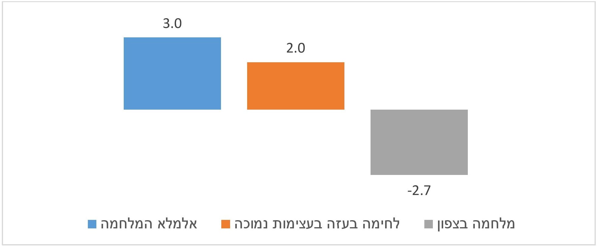 אי אפשר לשלול תרחיש של מלחמה בצפון – בחנו מה המשמעות של תרחיש מלחמה מלאה בצפון – והמשמעות היא התכווצות של ממש בתוצר. תרחיש הרבה יותר חמור מהתרחיש שבקונצנזוס. המדיניות הכלכלית לא לוקחת בחשבון את התרחיש הזה. (תרשים 2)