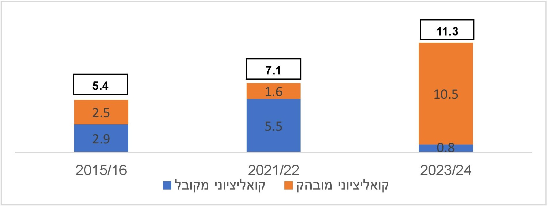 תרשים 3. תקציבים קואליציוניים, מיליארדי שקלים.