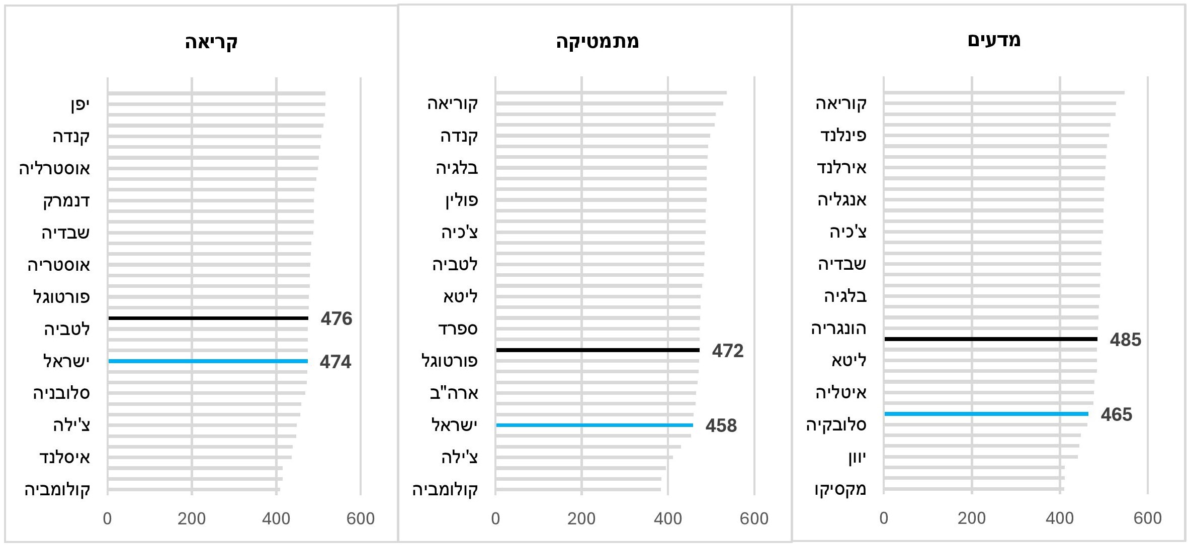 תרשים 7. הישגים במבחן פיזה, השוואה בין לאומית.
