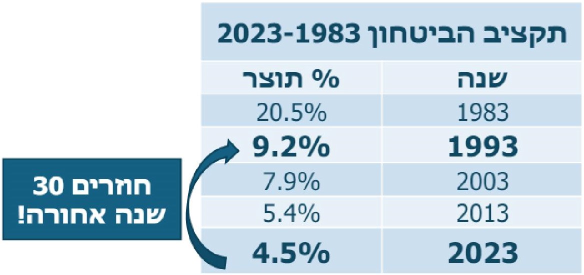 השאלה – מה יהיה משקלו של תקציב הביטחון בתוצר לאורך זמן: