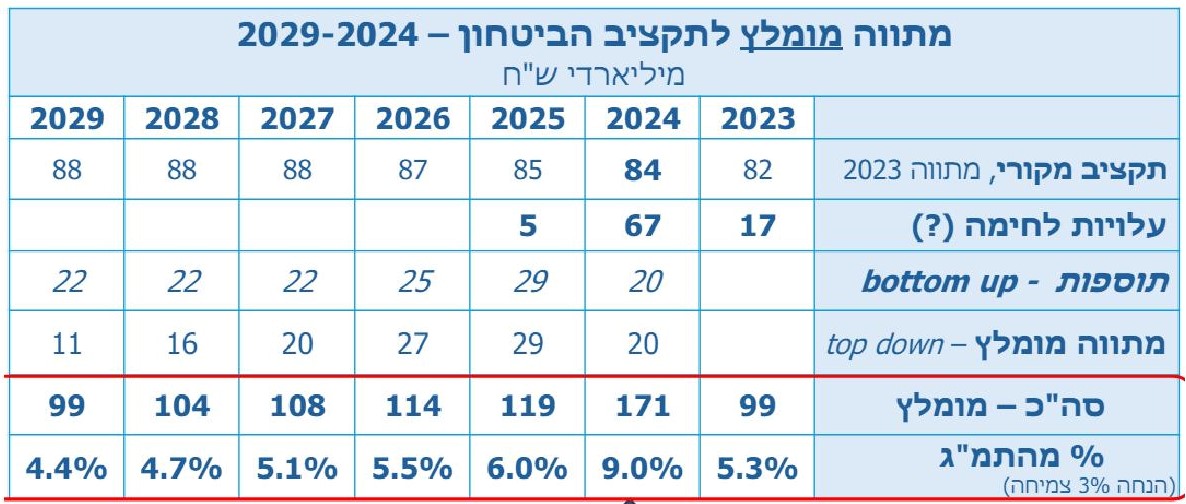 מקור: טרכטנברג (2024) "תקציב הביטחון בעקבות מלחמת חרבות ברזל", המכון למחקרי ביטחון לאומי (INSS), מצגת מכנס אלי הורביץ 2024.