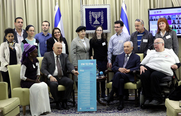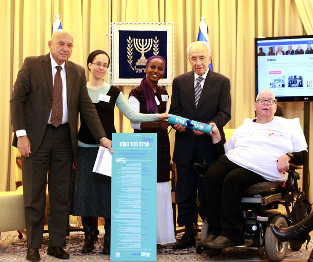 הענקת טיוטת מגילת כבוד האדם לנשיא פרס